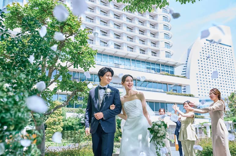 緑あふれる公園と横浜港を見渡す横浜ベイホテル東急。